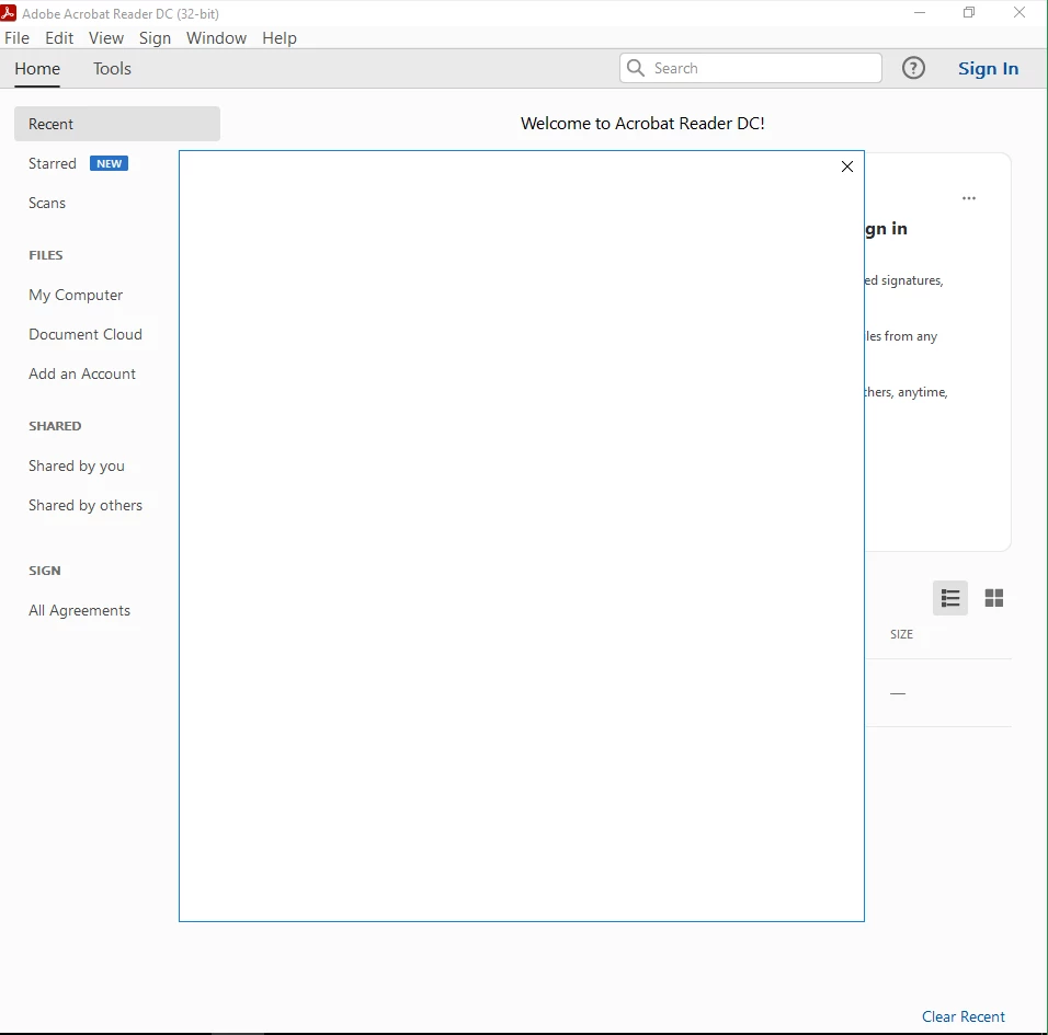 Adobe DC in app sign-in page is blank for all users in Microsoft AD remote desktop I cant find this same issue anywhere else online. All the other issues talk about blank white screen AFTER you sign in. This error happens only to the sign-in box within the Adobe DC application once you click it you cant log in. Internet Explorer options were set to allow/prompt on all security sections and allow all cookies. I even tried it with no security settings and unprotected mode same problem.