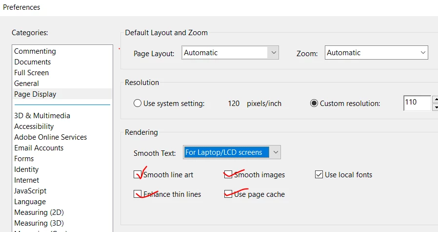 But If the Adobe Reader DC is launched, the registry keys changed immediately too.  I try to enable the Preferences > Page Display > Rendering > For laptop/LCD screens >