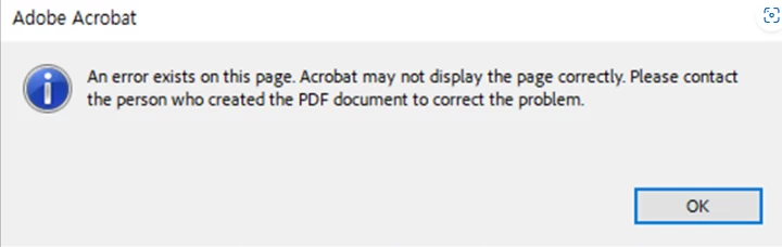 An error exists on this page. Acrobat may not display the page correctly