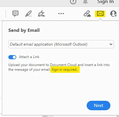 As of this morning, multiple users are no longer able to attach a file to email from within Acrobat Reader without a login.