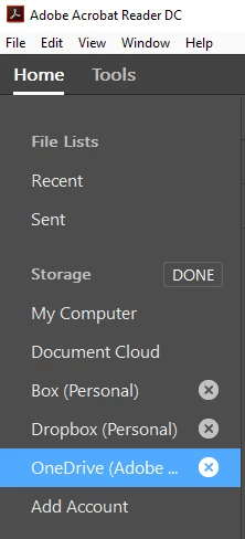 I linked OneDrive to my Acrobat Reader free cloud account.