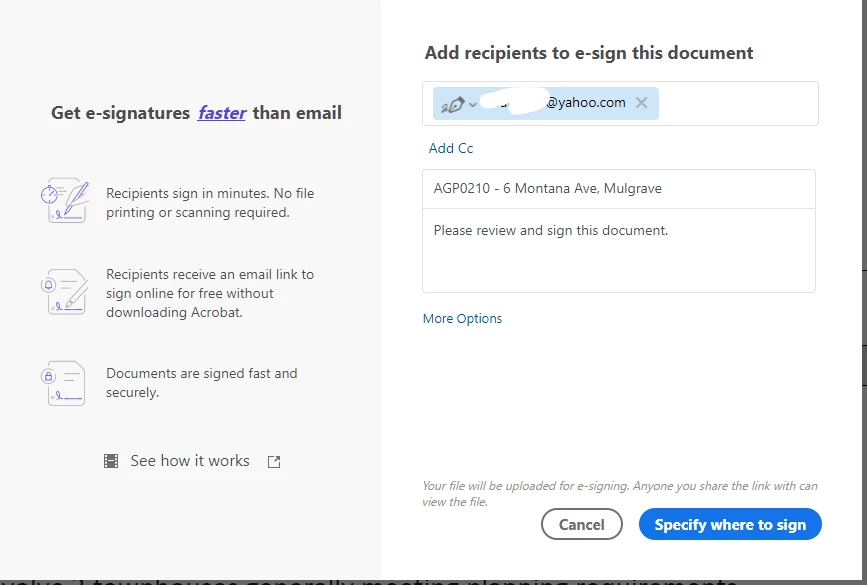 Click "Specify where to sign"