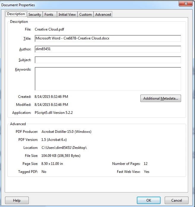 How do I find out when a PDF doc was originally created there is nothing under File/Properties