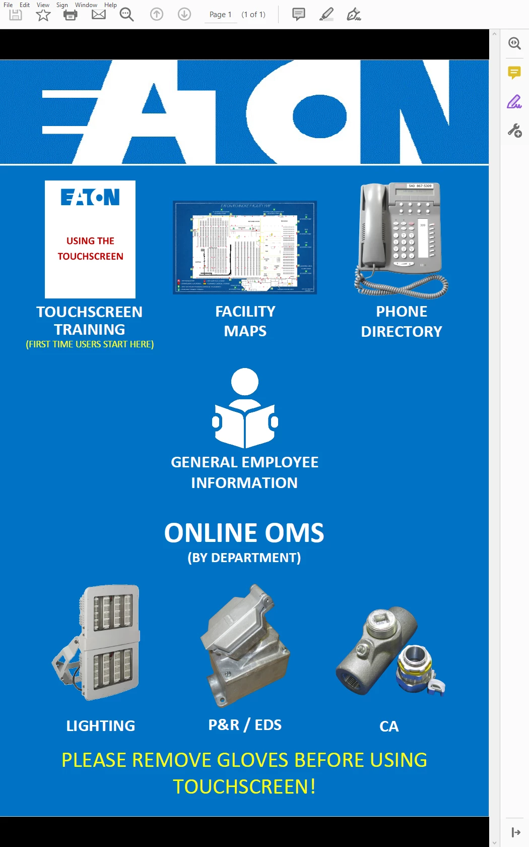I have five computers running Acrobat Reader, all used to open the same file. On four of the computers, the .pdf opens to full page like this, which it is supposed to do: