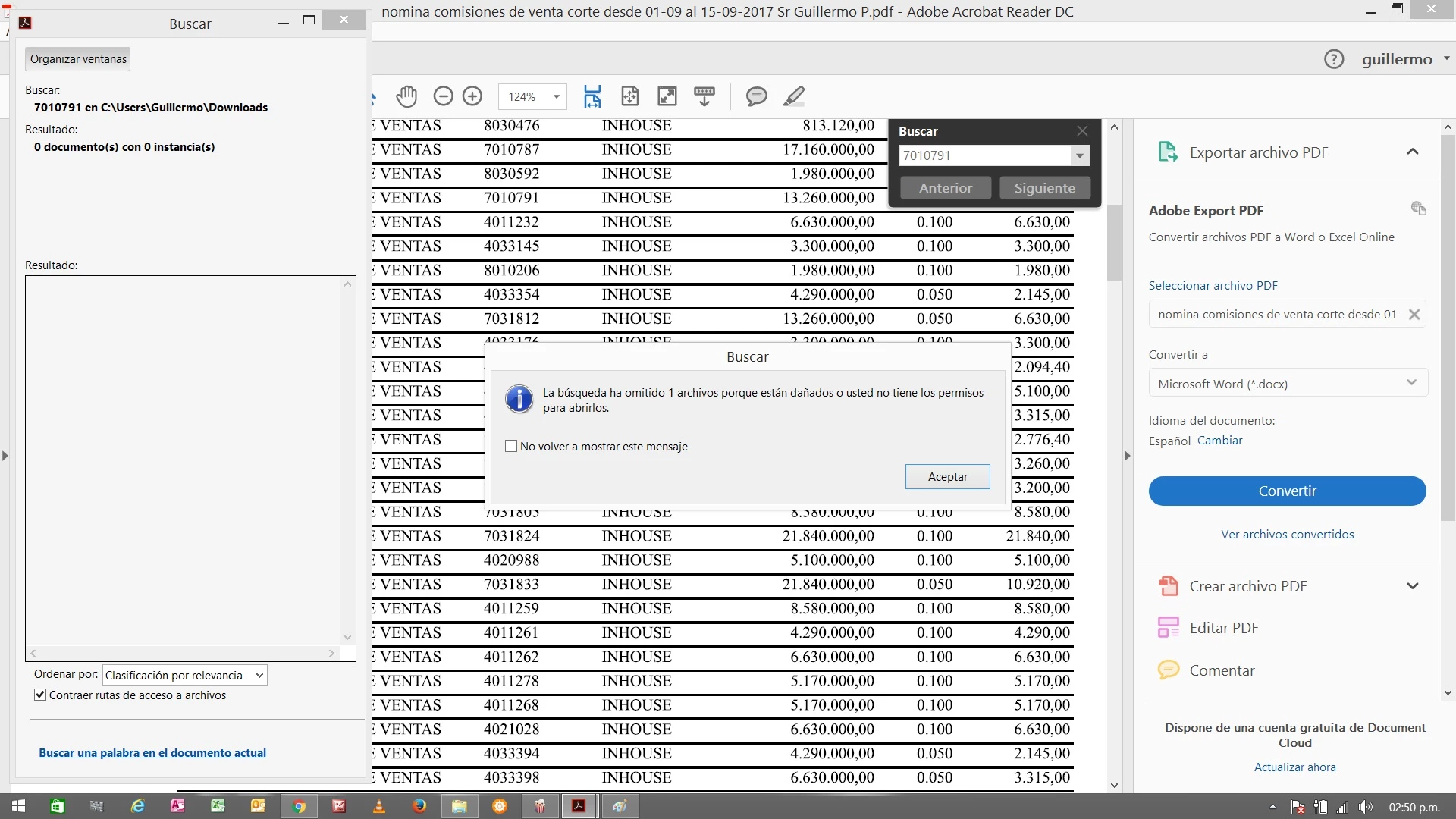 es el caso que acrobat no consigue jamas nada de lo que le pido que busque. no importa si estoy buscando algo que esta dentro de un documento que estoy mirando o si le pido que haga una búsqueda avanzada para que busque en un loto de archivo pdf y me muestre el que contiene ese registro en particular.