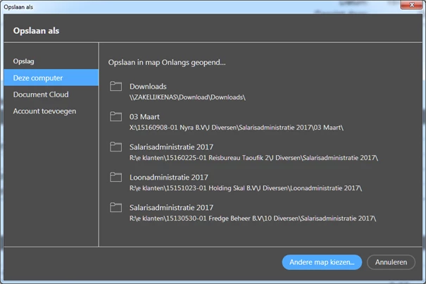 Since I've changed on mij NAS the path of my my directory "Zakelijke klanten" from N:\\ to the current path X:\\ it's no longer possible to storage more than one PDF in the same map with the help of "Recently opened", see the following printscreens:
