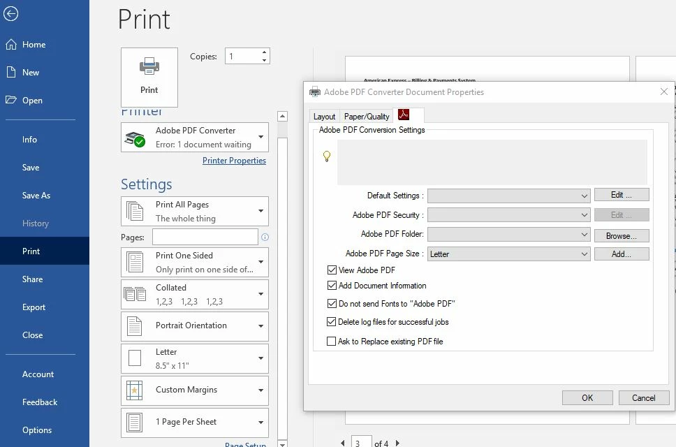 PDF file is not being saved : Print - Adobe PDF Converter