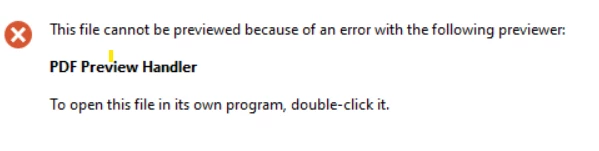 When I get a pdf attchment and try to prview it in Outllok 2016, it gives me an error. I have tried all the suggestions as far as re-installing changing the settings for Adobe Reader to enable thumbnails.