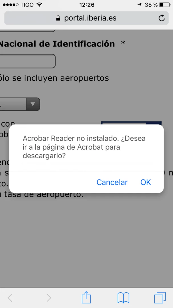 Airline website asks me for acrobat reader to Check In (iOS Safari), I installed the app in my iPhone, but it doesn't work and still asking to install Adobe Acrobat Reader at my iPhone, I just installed from app store, erase History at Safari, I re-Open website at Safari iOS(10.1.1), but it doesn't work ![]()
