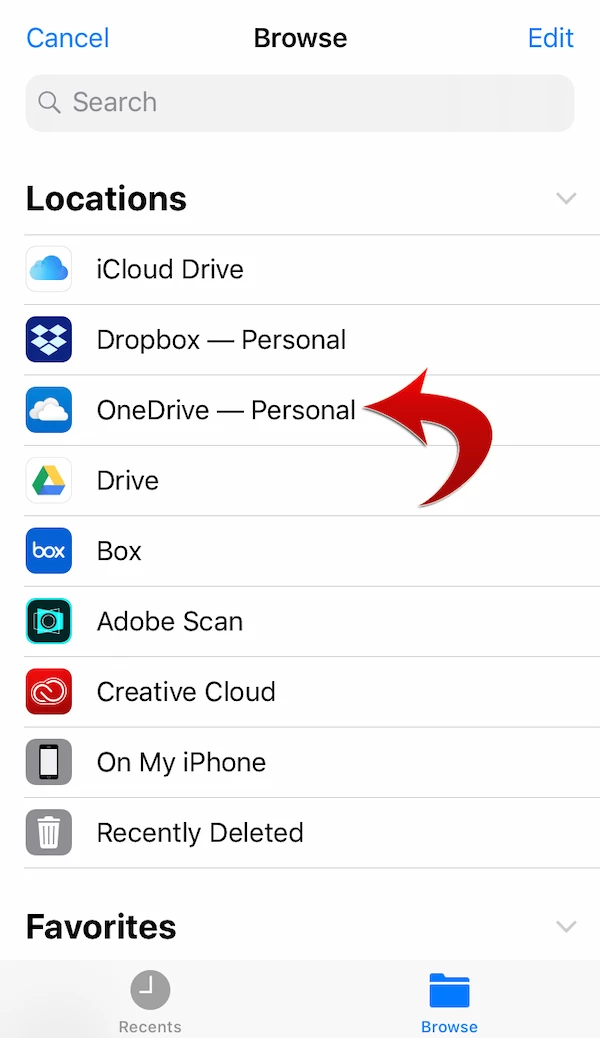 The locations (cloud storage apps) and the number of locations may vary depending on the apps you've installed on your iPad/iPhone.