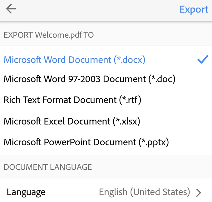 Export PDF to other formats - Acrobat Reader Mobile App.