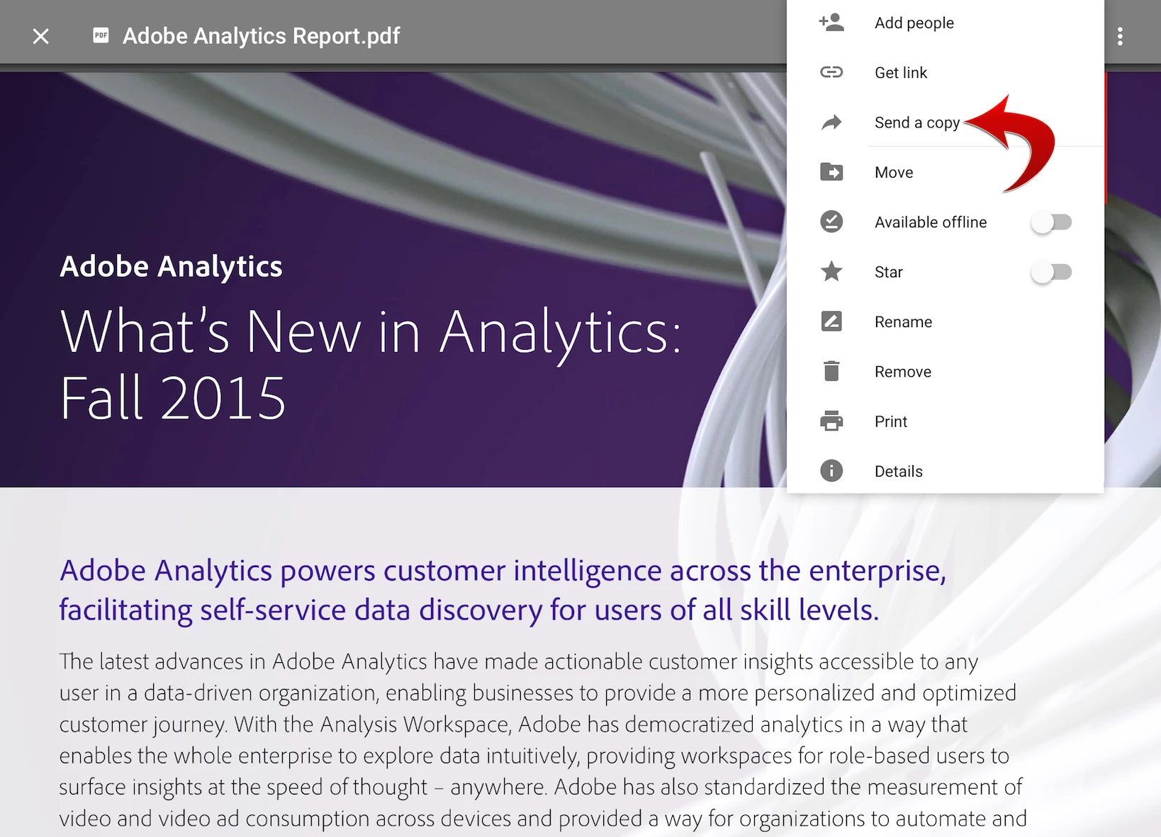 1. Tap the attachment file name (not the Google Drive icon) to open the PDF document in the built-in PDF viewer.