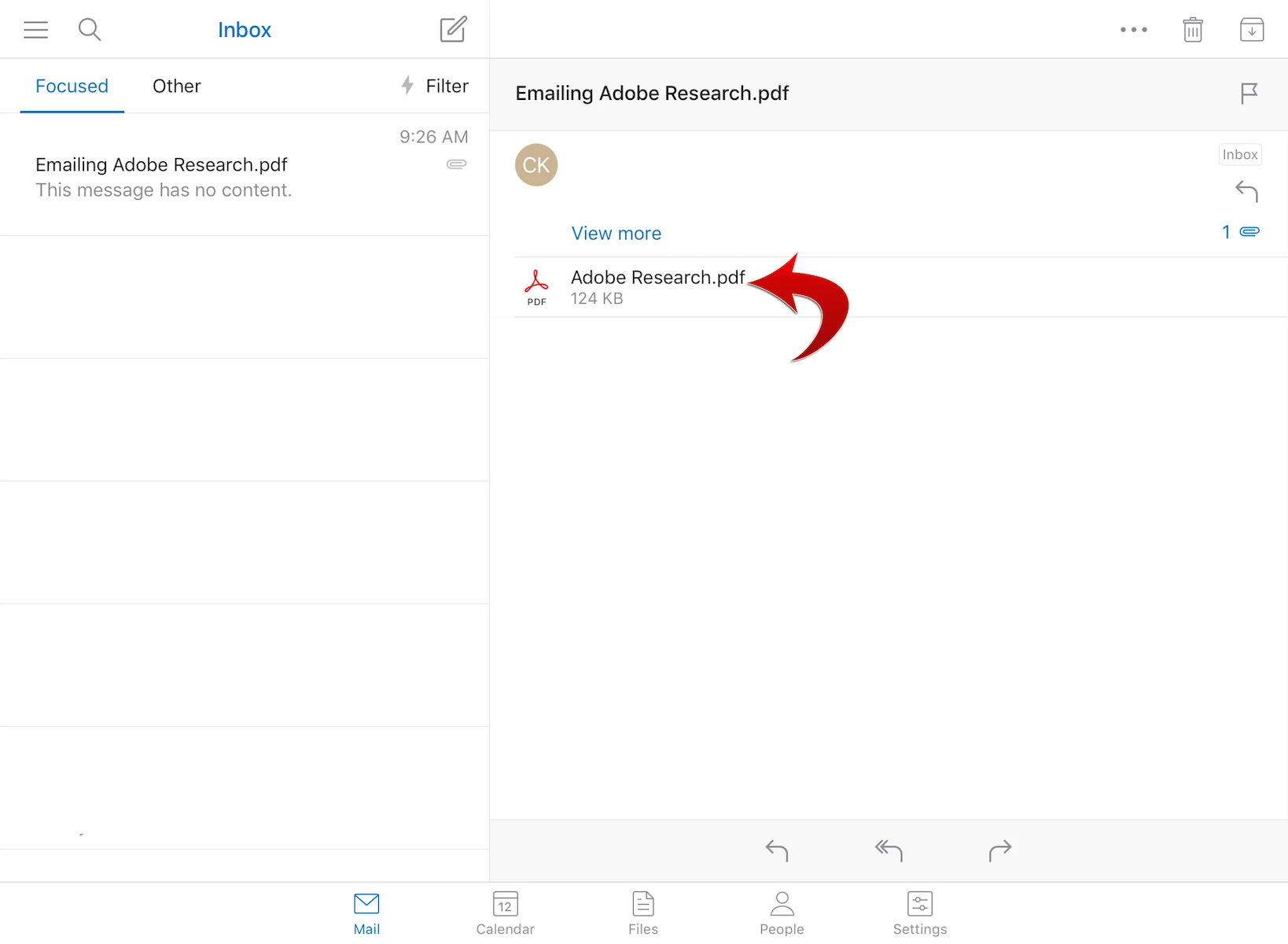 1. Tap the attachment file name to open the PDF document in the built-in PDF viewer.