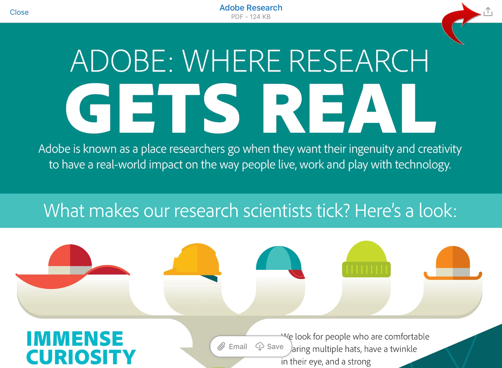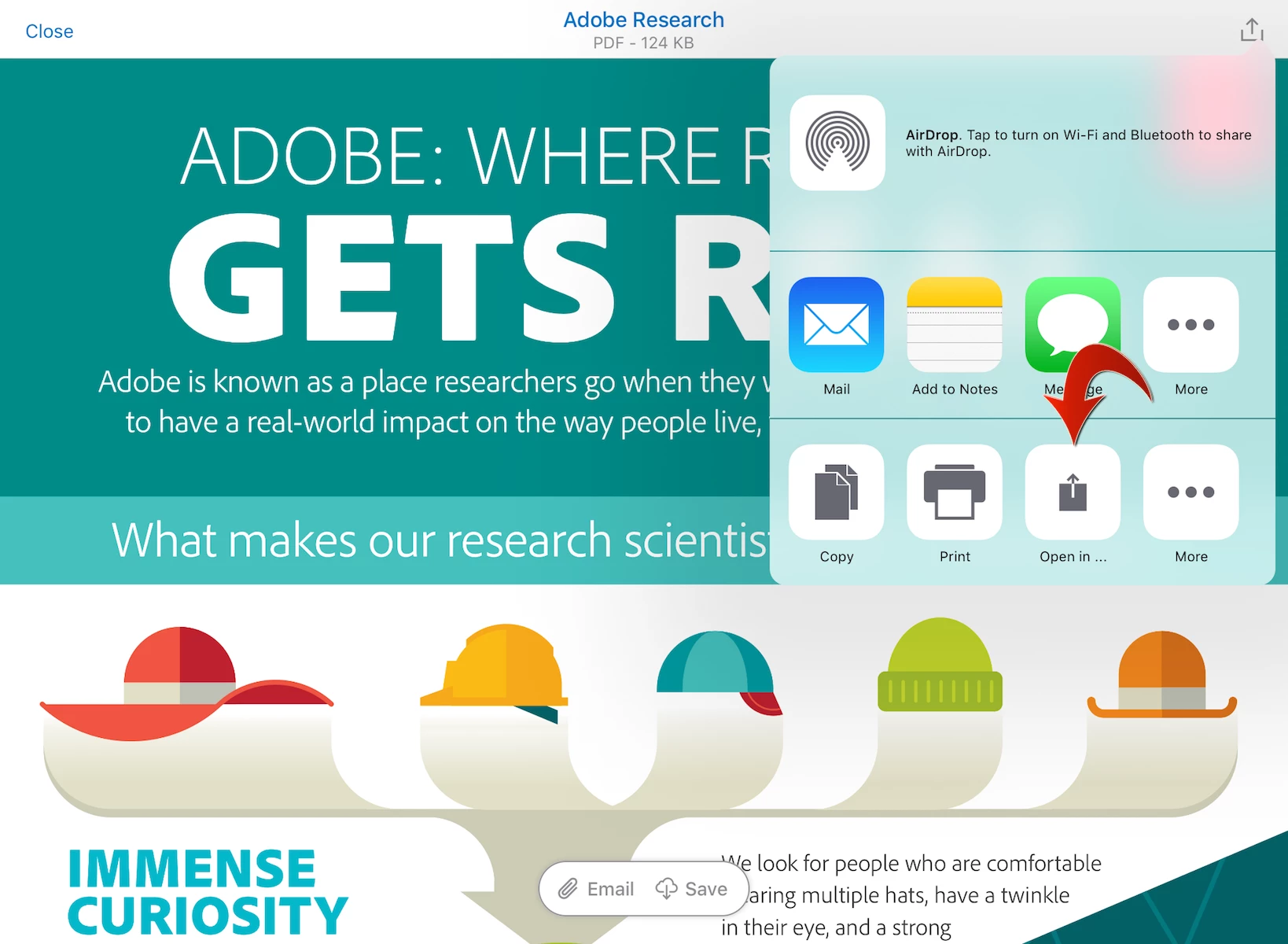 - For iPad on iOS 7, see How to open PDF documents in Adobe Reader (iPad on iOS 7 version).