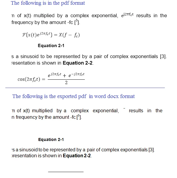 Acrobat does not Export formulas in document when converting from pdf to word Windows 10