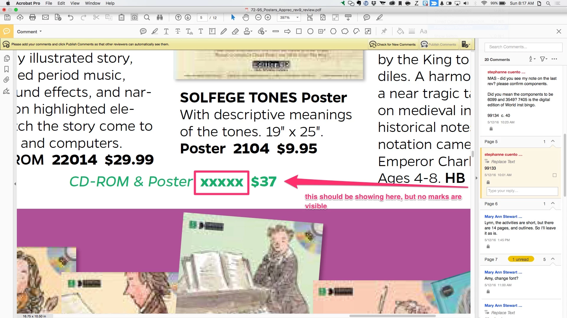 2 Mac users in our group are having "invisible" comments since upgrading to the latest version of Acrobat DC Pro (2015.016.20039). and Adobe Reader. You can see the comments in the comments bar, but you can't see them anywhere on the page. It'll jump to the spot where the comment should be, but won't show any markings on the PDF. Here's an example: