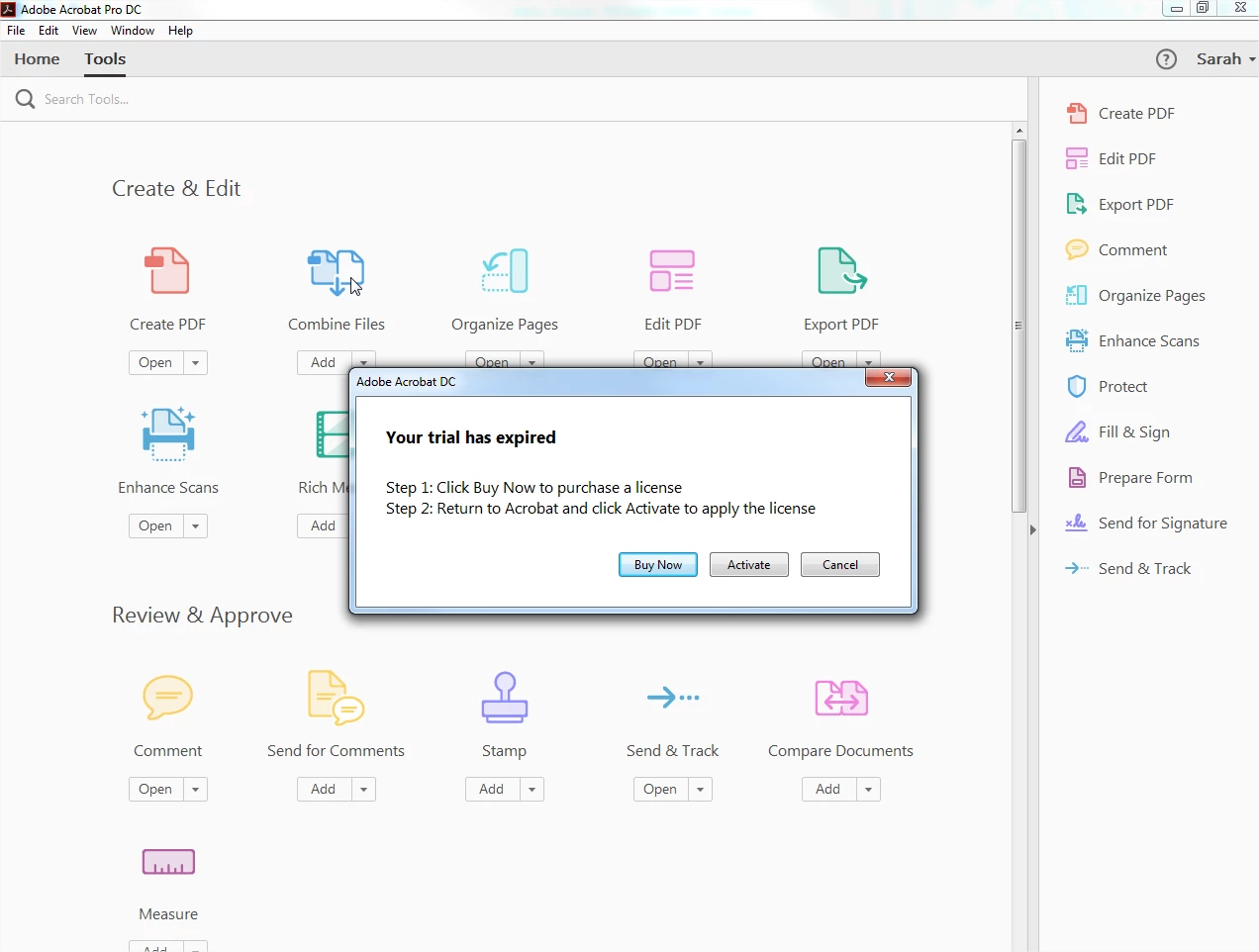 A few months ago, before my company got my licence, I used the trial version of Adobe DC. In the mean while I got my company licence and the trial has expired. After updating and even reinstalling, I still got the expired message and if I want to use the tools I got the message that I have to buy the program.