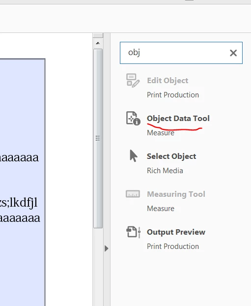 I recently upgraded to Acrobat DC and can't find where the object data tool has moved. It used to be under Tools>Analyze>Object Data Tool. This was helpful for identifying objects in a GeoPDF. Below is a screen grab from the previous version.