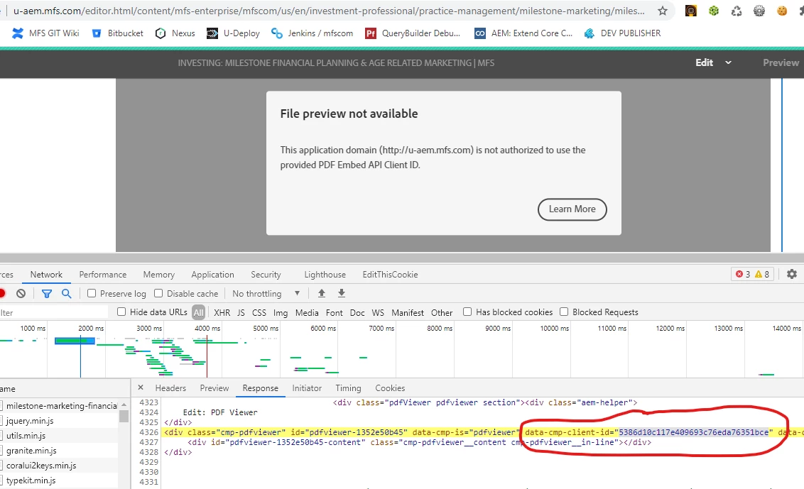 Issue with Adobe Experience Manager integration with PDF Embed API