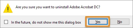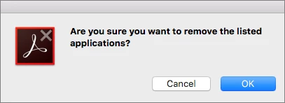 - In the confirmation dialog for Acrobat DC removal, click OK.