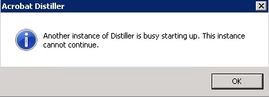 I have Excel Report with Macros which creates multiple PDF files using Acrobat Distiller. It creates couple of PDF files and then stop after that giving below error message. I have tried to reboot computer, but it still didn't help. Is there anything else i should try? Acrobat version is 9.