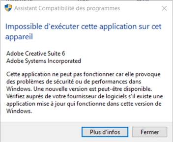 Impossible d'exécuter cette application sur cet appareil