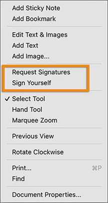 New Sign options in the right-click context menu in Acrobat DC