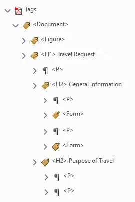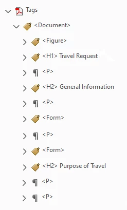 When we talk about the loosey-goosey term "structure" in accessible documents, we really mean a very lite version of structure that depends mainly on the tag (or labels) themselves and their reading order in the Tags panel.