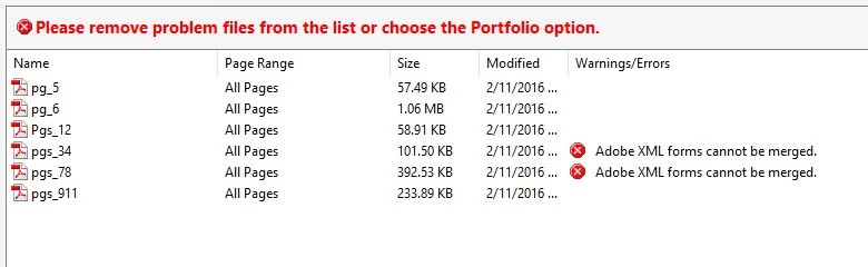Someone from Fiverr is merging PDF documents from me and they are unable to merge some newer PDFs that I downloaded from a government website. They get an error that reads "Adobe XML forms cannot be merged". Is there a way to convert these forms to a mergable pdf format? Here is the error message that he gets.