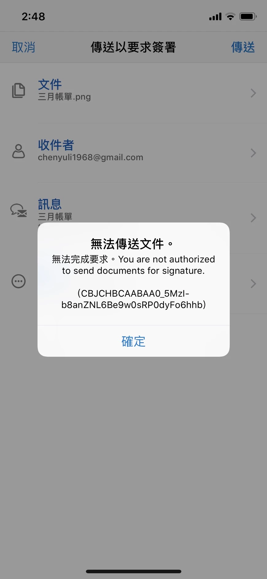 Could you please confirm if you get the error only when you send a document from the mobile application or on the desktop as well?