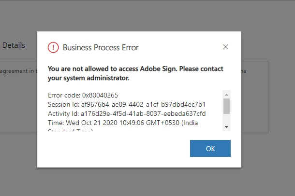 I am trying to send a agreement to the customer i am getting business process error please give the suggitions.