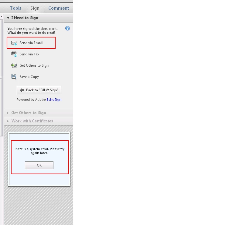 Adobe Sign system error