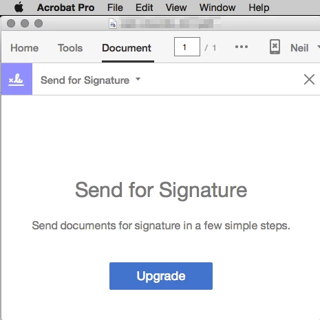 I have recently signed up for a trial account of Adobe DC specifically so that we can send fillable forms for signature by our clients. However, after creating my form and clicking "Send for Signature" I am asked to upgrade to a paid account. See the screenshot attached.