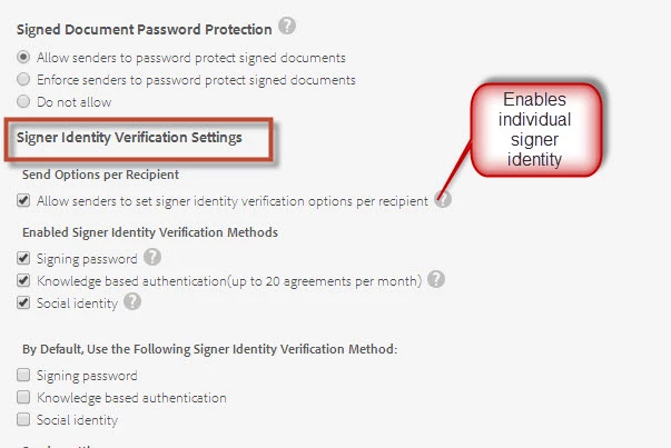 3) Check the box “Allow senders to set signer identity verification options per recipient”.