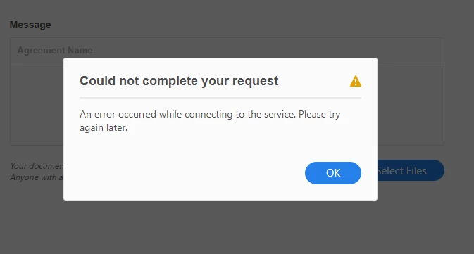 I have been having the same problems over the last 24hrs. Some documents get through and are successfully signed, whilst others get blocked by this error message