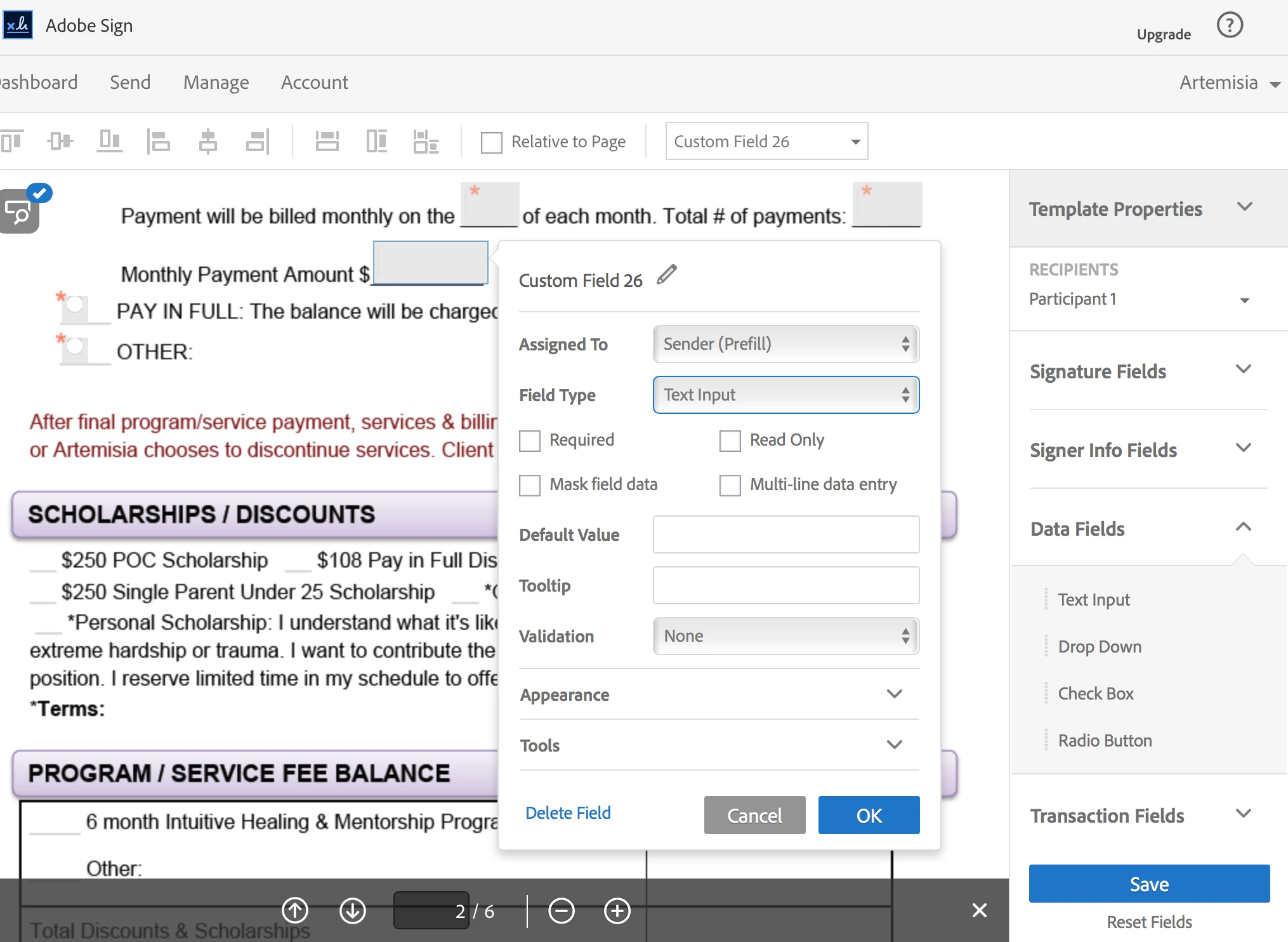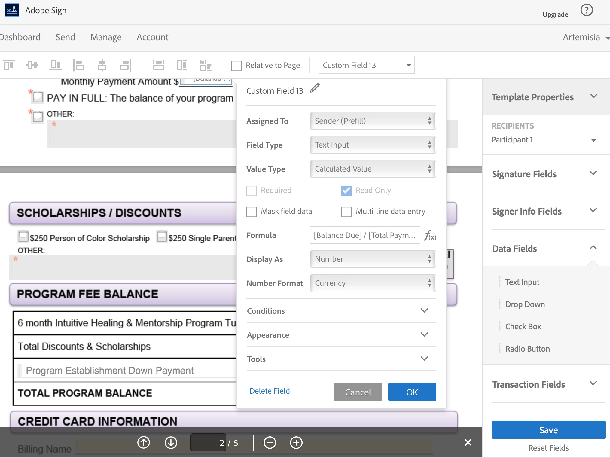 I am trying to enter a calculated value based on a formula in a new document I am currently editing in Adobe Sign to save as a template. There is no option for "Value Type" so that I can input a calculated value! It only allows for text input. HELP!! Where is this option? How do I get it back?
