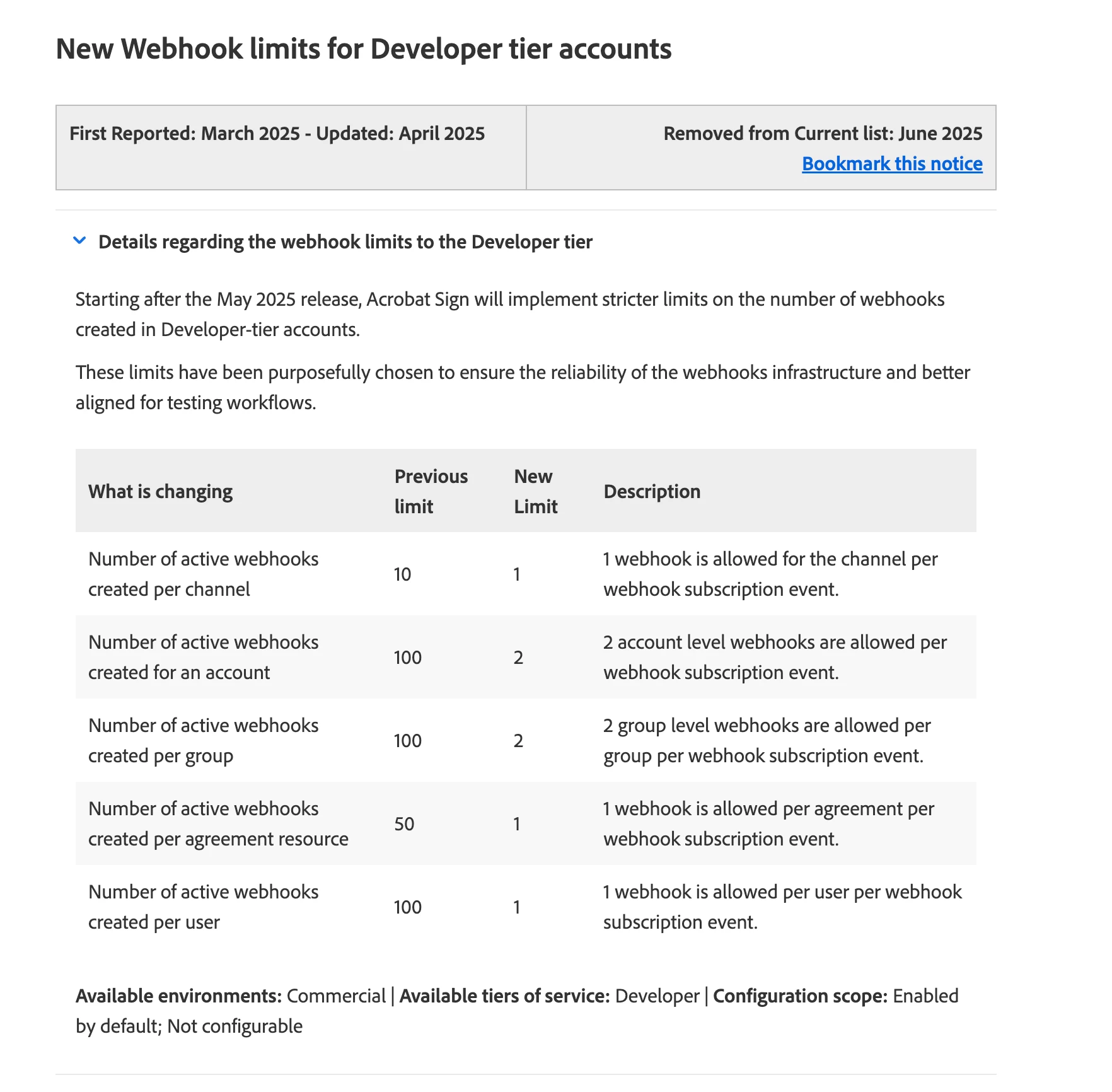 Since there's an error code for it, I would like to know what exactly (or roughly) is the maximum number of active webhooks per resource in my AdobeSign account (100, 1000, 10000, etc).