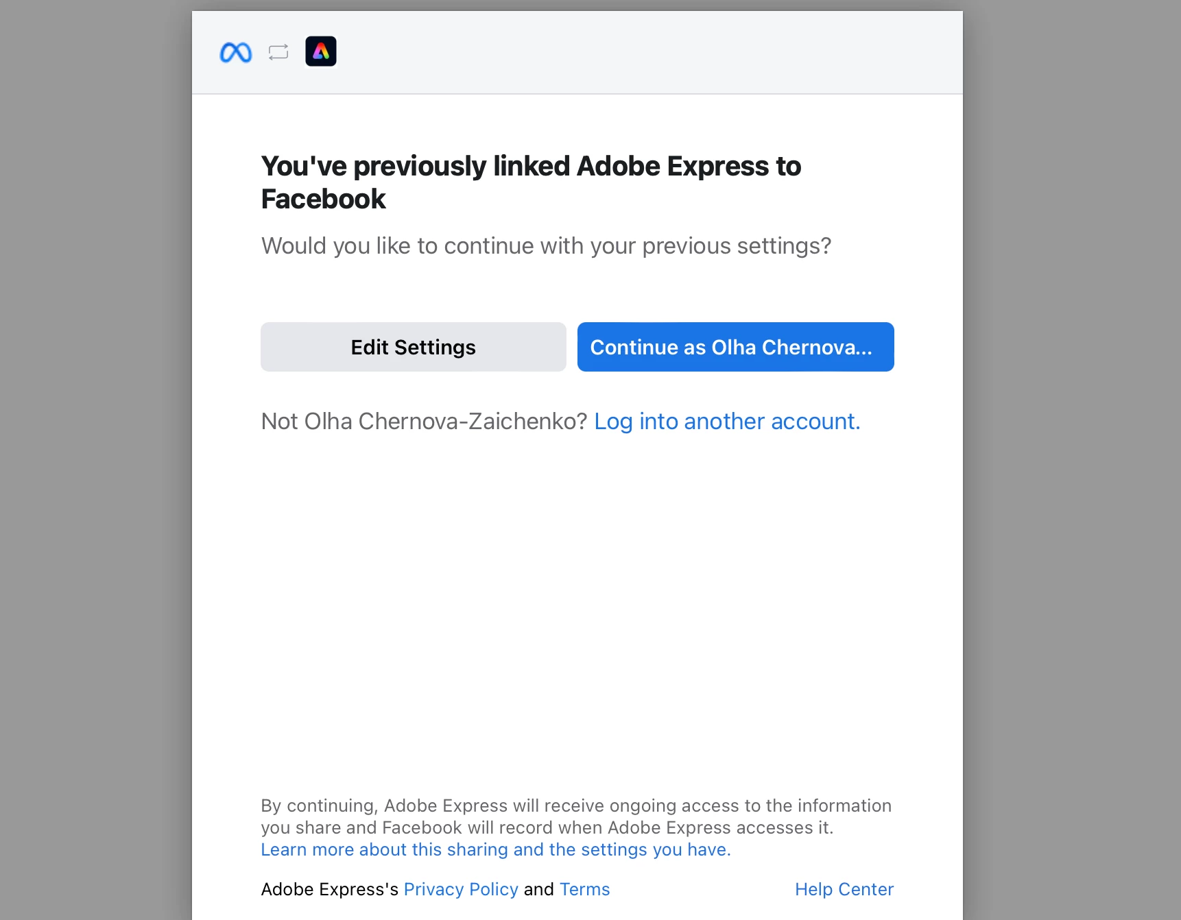 I got an error on Adobe Express "Failed Connection" but my Facebook said “You've previously linked Adobe Express to Facebook".
