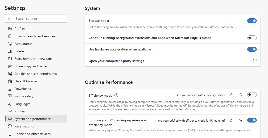 In Microsoft Edge it's under Settings > System & Performance