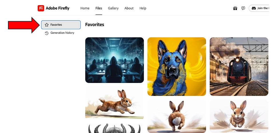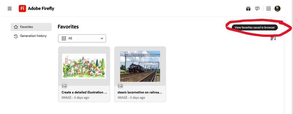 Alternatively, you can just browse to: https://firefly.adobe.com/files?tab=favorites.