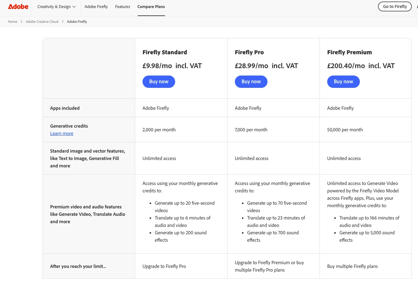 Where as there are Adobe Firefly plans that you have to buy seperately.