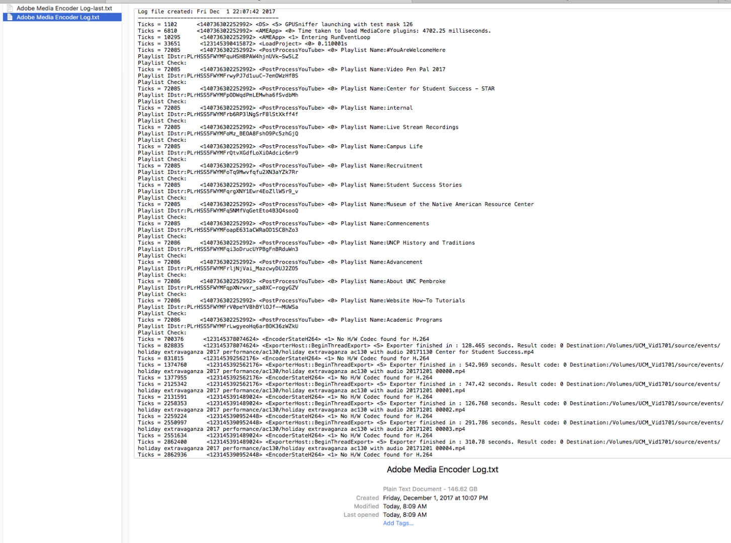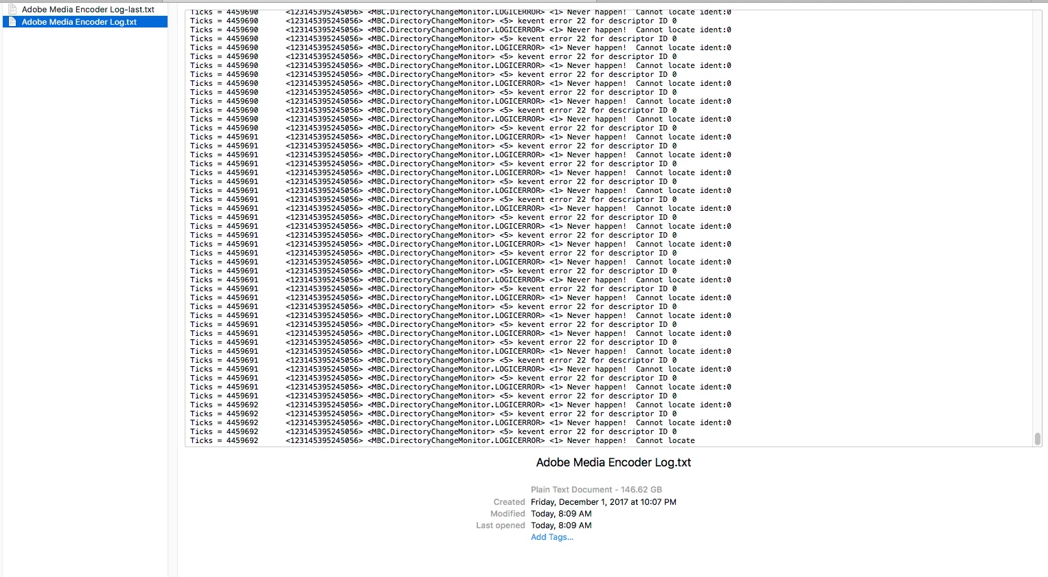 Adobe Media Encoder Log.txt keeps growing to over 140GB. Filling up my SSD
