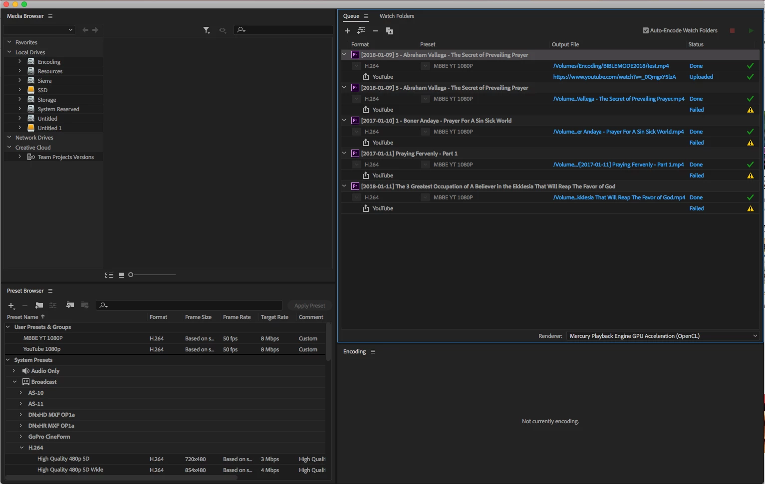 Earlier today I tried creating preset in AME and not Premier Pro and I encode 1 min "test" video and I was happy that it was successfully uploaded, so I proceeded to encode the remaining files in my queue.