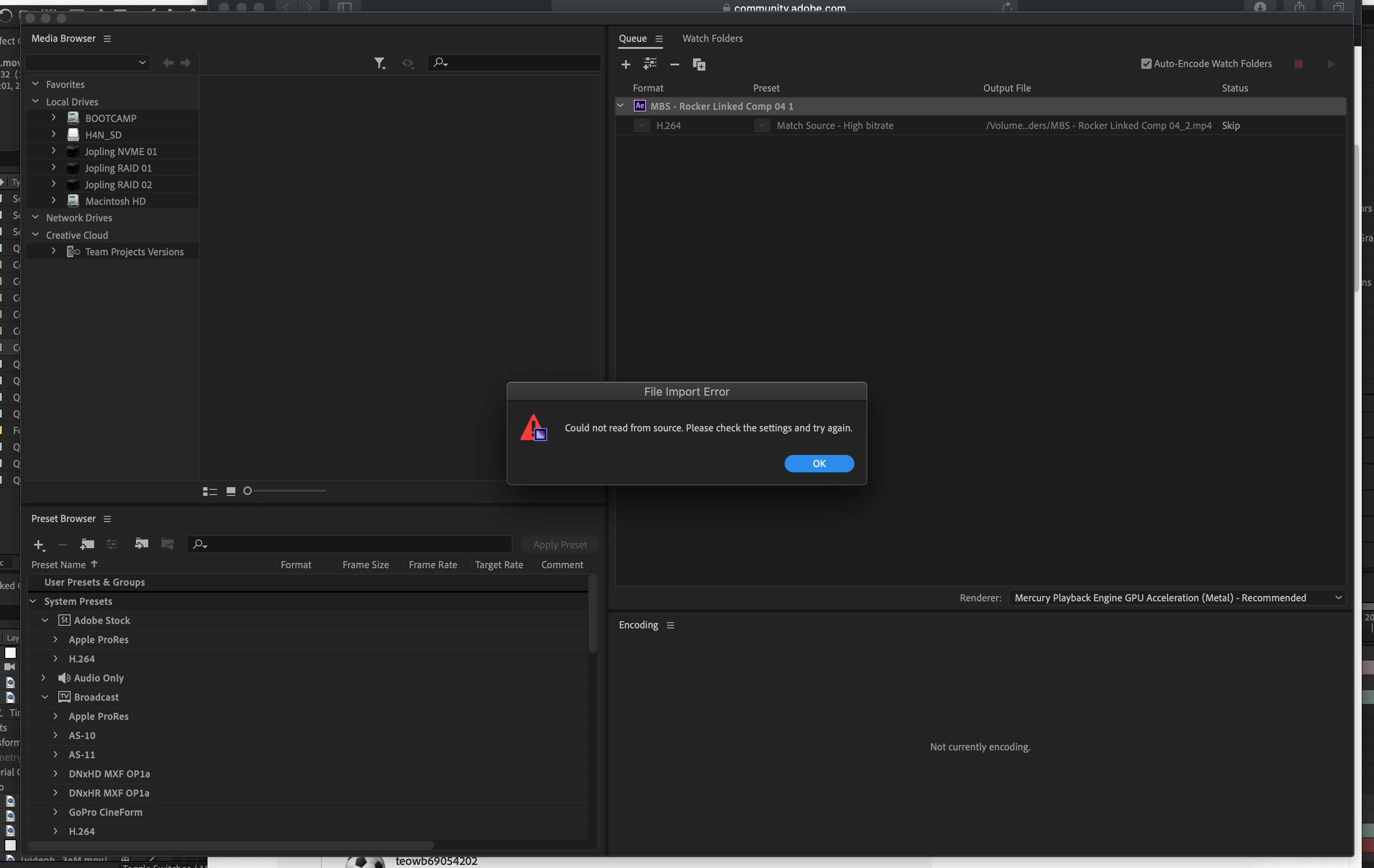 AE to Media Encoder "Could not read from source. Please check the settings and try again."