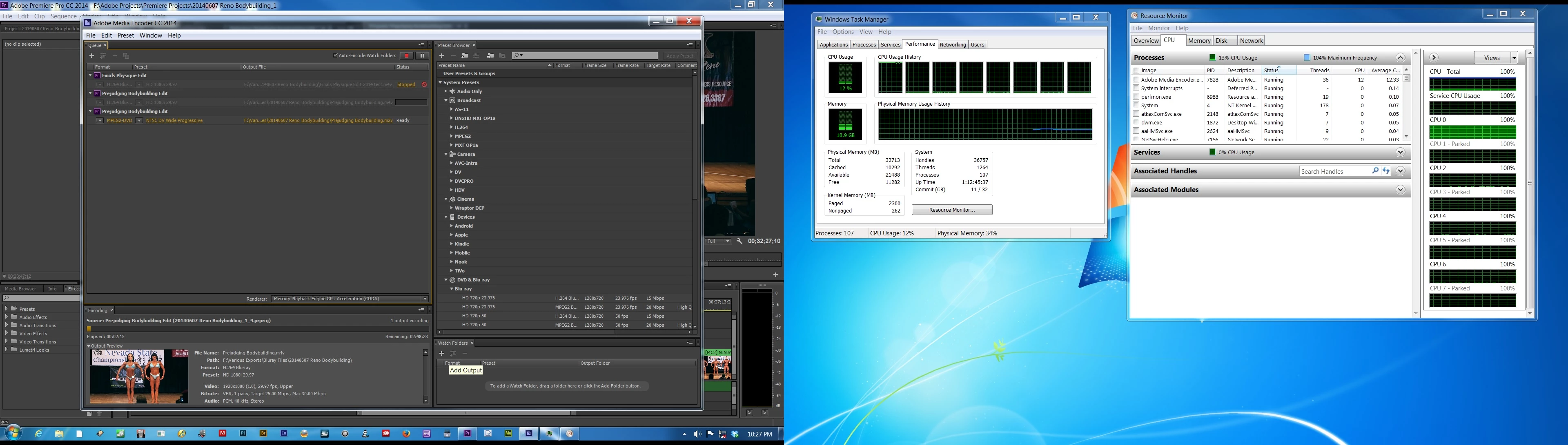 Encoding is very slow with AME CC 2014. Resource monitor shows only one of the eight CPUs working while the rest are parked. This was not happening in CC version. Is there anything I can do to control this? I happen to be exporting to h264 Bluray. Says it has 2 1/2 hours remaining, which is way tool long for this project.