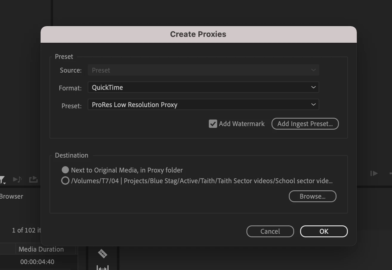 In Premiere Pro, I right-click an MXF file > Create proxy > which leads me to this screen below