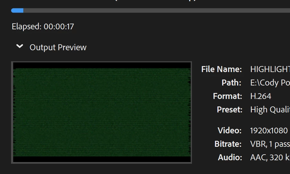 Glitchy Green Output Preview screen and file in Encoder