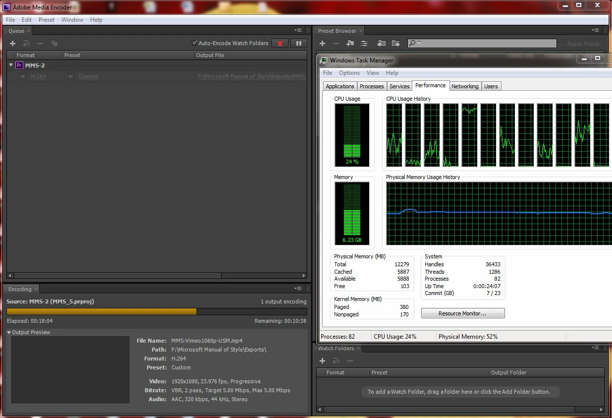 Media Encoder CS6 Not using all CPU Cores or RAM
