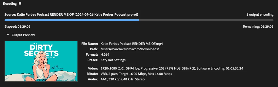 #3 camera edited sequence, color correction, Beauty Box filter, and that is about it. A lower third logo, but nothing really graphics heavy at all throughout the whole project. This machine should BLAZE through that export, but no. Even without the pause, it is still taking TWICE as long as the length of playback. 1hr20m podcast, is taking 3 hours on remaining time. Then add in a 6-10 hour break in there, you can imagine it is bery frustrating. I mean, there is no CPU acitvity, but could something be processing in the backround on that i am not noticing? Is this thing actually still "working" behind the scenes?