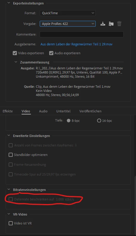 We are exporting to ProRes through AME. Unfortunately the bitrate is limited to 1.000 kbps and the option to change it is disabled...